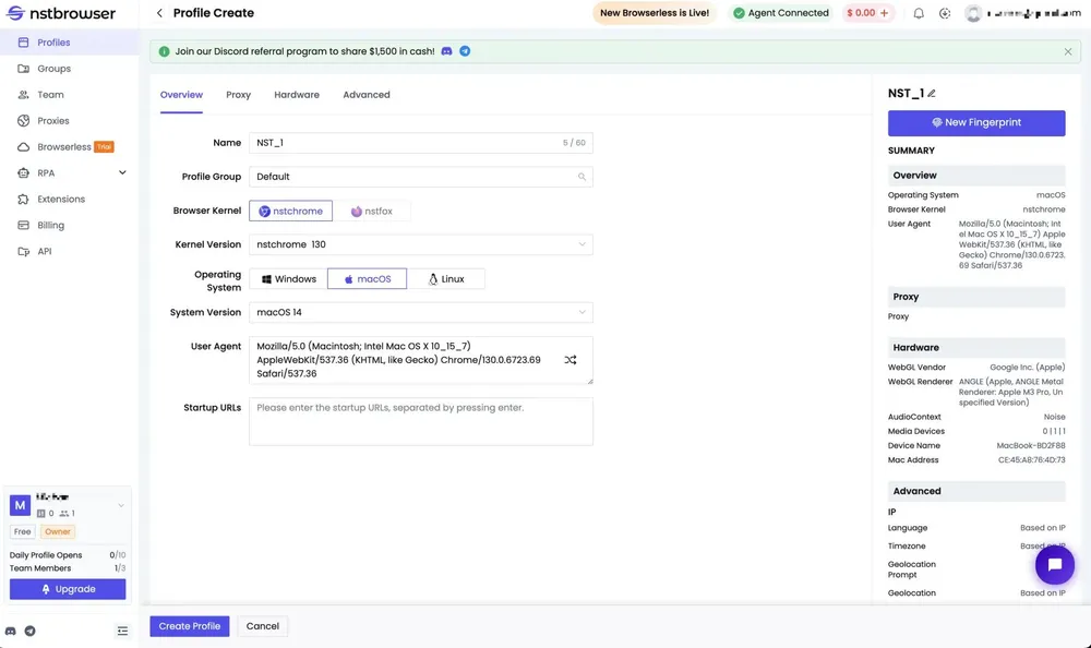 访问Nstbrowser官方网站( https://www.nstbrowser.io )下载并安装浏览器。首次使用需要注册账号,填写基本信息后即可登录。