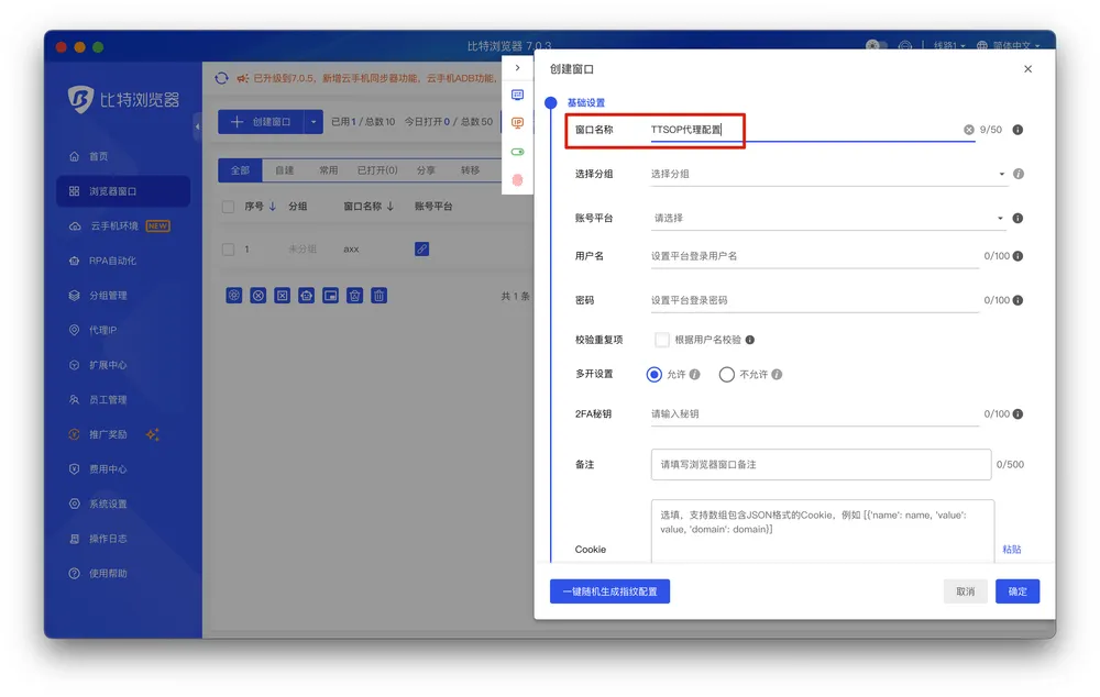 在比特防关联浏览器中配置TTSOP的IP代理,实现多账号管理和IP防关联。跟着这些简单的操作指引,就可以轻松完成设置。