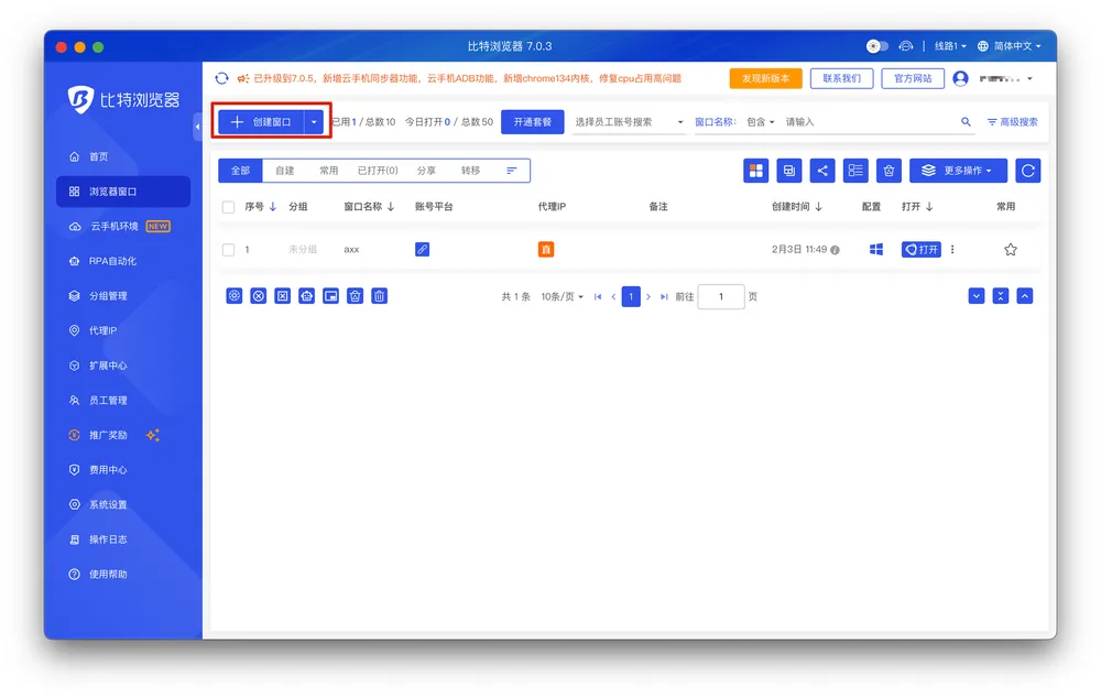 1、打开比特防关联浏览器
