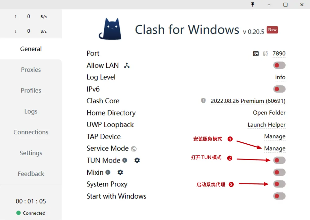 Clash环境配置,必须安装服务模式+TUN模式