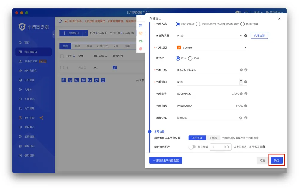 至此,比特浏览器的代理配置已经完成。您可以开始正常使用比特指纹浏览器,访问需要的网站。