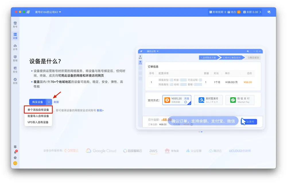 在紫鸟浏览器里,代理设置放在了“设备”选项卡里,我们选择“设备”。